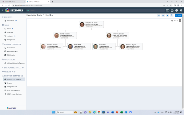 Omdat Ultimus begrijpt dat veel bedrijfsprocessen dynamisch zijn en aanpassingsvermogen vereisen, biedt het robuuste, geïntegreerde mogelijkheden voor casemanagement. Deze functie maakt naadloos beheer van zowel gestructureerde workflows als ongestructureerde taken mogelijk, waardoor alle aspecten van een case efficiënt worden afgehandeld. Met geavanceerde organisatiestructuren kunnen gebruikers rollen en relaties grafisch definiëren, wat zorgt voor duidelijkheid en flexibiliteit bij het beheren van procesactiviteiten.
